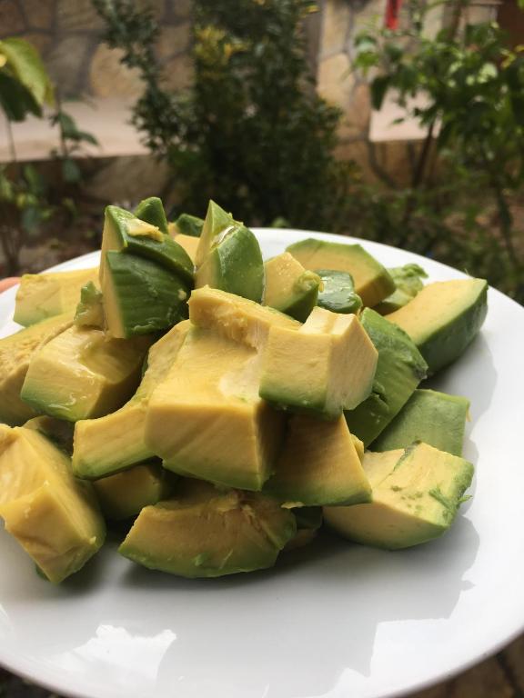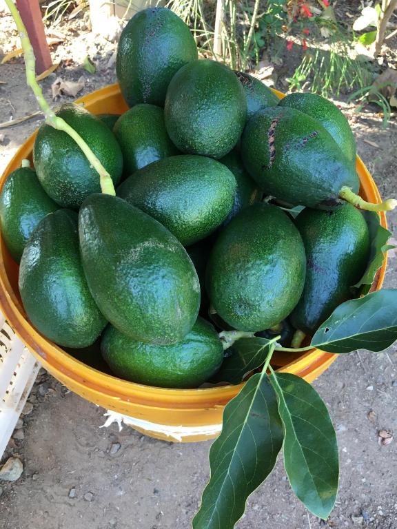 پرتقال و آووکادو در باغ رشد می کنند.