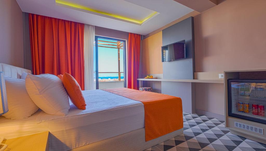 اولاً، اتاقی با عایق صوتی وحشتناک به ما داده شد. هتل در کنار بزرگراه واقع شده است. در پنجره ها شکاف وجود دارد، درب بالکن منحنی است که صداهای زیادی نیز از آن وارد می شود. وقتی با مدیریت تماس گرفتیم، قول دادند که آن را برایمان عوض کنند، اما در نهایت گفتند که این نوع اتاق ها همه اشغال شده است و گرانتر به ما نمی دهند، ظاهراً باید هزینه اضافی پرداخت کنیم. بعد قول دادند به تعمیرکار زنگ بزنند که کاری انجام دهد اما کسی نیامد. با اون پولی که اومدی از تعطیلاتت لذت ببری یه کم بخواب، آخرش به خاطر اتوبان 2 روز خواب معمولی نداره. وعده های آنها بی ارزش است، و آنها نمی توانند با ارائه چنین تعداد نفرت انگیزی با مشتریان خود ملاقات کنند، این به سادگی وحشتناک است. من نمی فهمم چرا حتی مردم را در چنین اتاق هایی قرار می دهند، آنها ابتدا باید بازسازی شوند. ثانیاً همه چیز را شامل می شود. بوفه وجود ندارد، اما منویی به شما می دهند که در آن غذاها را خودتان انتخاب می کنید. اما یک محدودیت وجود دارد: شما فقط باید یک غذای اصلی را انتخاب کنید ... ثالثاً در نزدیکی استخر اصلی تعداد کمی تخت آفتابگیر وجود دارد، بنابراین شما باید زودتر از خواب بیدار شوید و بنشینید. اما برای ما این مشکلی نداشت، شب ها زیاد نخوابیدیم. و اگر میخواهید بیشتر بخوابید، از پلهها به سمت دریا پایین بروید و در آنجا استراحت کنید، جایی که هیچ امکاناتی جز صندلیهای آفتابگیر و چتر وجود ندارد. بدون موسیقی، بدون بار، بدون توالت.