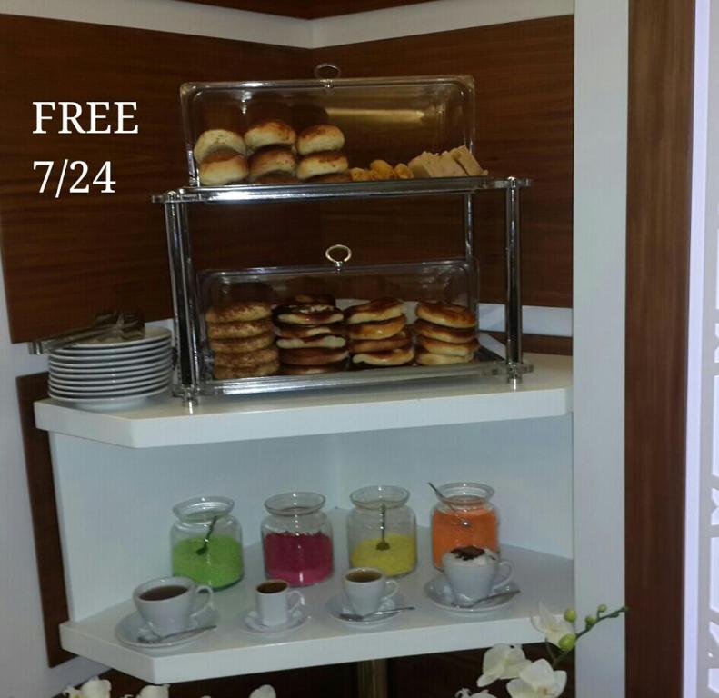 هتل در تصاویر ادعا کرده است که میان وعده های رایگان 7/24 وجود خواهد داشت اما در واقع هتل هزینه میان وعده ها را دریافت می کند.
