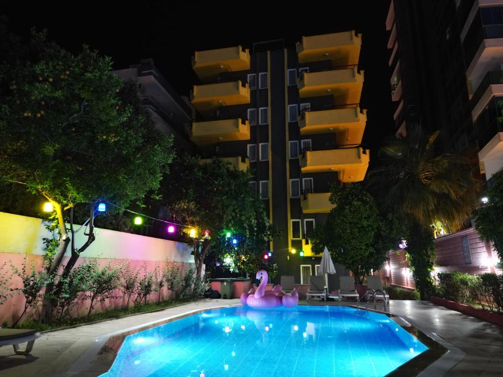 هتل گلد توئینز که رو به ساحل است، اقامتگاه های 3 ستاره در آلانیا ارائه می دهد و دارای یک استخر فصلی در فضای باز، باغ و تراس است. این هتل که دارای یک بار است، به چندین جاذبه مشهور نزدیک است، حدود 2 دقیقه پیاده تا ساحل محمودلار و حدود 0.9 مایل تا ساحل کستل فاصله دارد. مهمانان می توانند از منظره دریا لذت ببرند. اتاق های مهمان مجهز به تهویه مطبوع، تلویزیون صفحه تخت با کانال های ماهواره ای، یخچال، چای خوری برقی، دوش، لوازم بهداشتی رایگان و کمد هستند. این هتل اتاق های خاصی را با منظره شهر ارائه می دهد و هر اتاق مجهز به بالکن است. اتاق های مهمان در هتل گلد توئینز بوتیک دارای قسمت نشیمن هستند. مهمانان اقامتگاه می توانند از صبحانه بوفه لذت ببرند. زبان هایی که در پذیرش صحبت می شود عبارتند از بلغاری، آلمانی، انگلیسی و روسی. میدان آتاتورک آلانیا 7.2 مایلی تا هتل گلد توئینز بوتیک و پارک آبی آلانیا 7.8 مایلی فاصله دارد. نزدیکترین فرودگاه Gazipaşa-Alanya است که در 18 مایلی هتل قرار دارد و این ملک خدمات رفت و برگشت فرودگاهی را ارائه می دهد. زوج ها به طور خاص موقعیت مکانی را دوست دارند - آنها برای سفر دو نفره به آن 9.2 امتیاز داده اند. فاصله در توضیحات ملک با استفاده از © نقشه خیابان باز