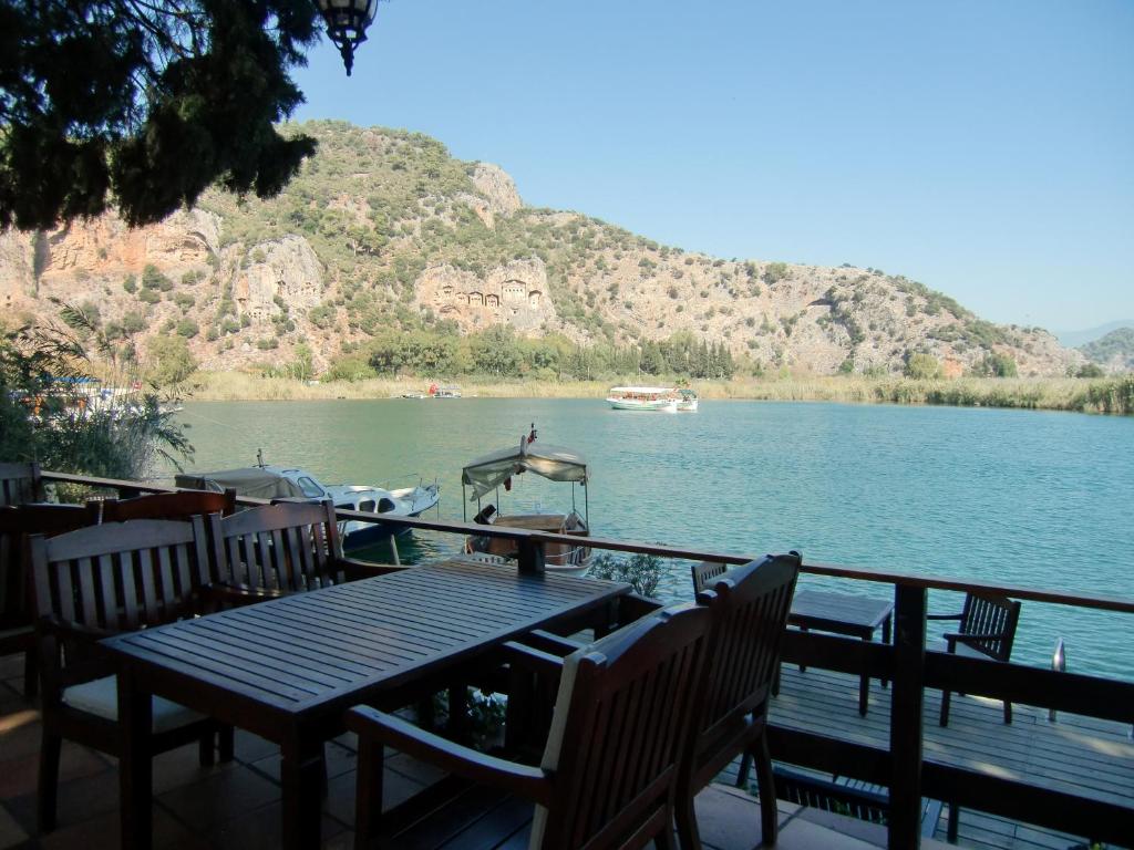 روی اسکله میز و صندلی، صندلی راحتی و کوسن هایی وجود دارد که می توانید صبحانه بخورید، (درست از آن طرف رودخانه) مقبره معروف پادشاهان کاونوس را تحسین کنید و اگر می خواهید حتی در خود رودخانه شیرجه بزنید. .