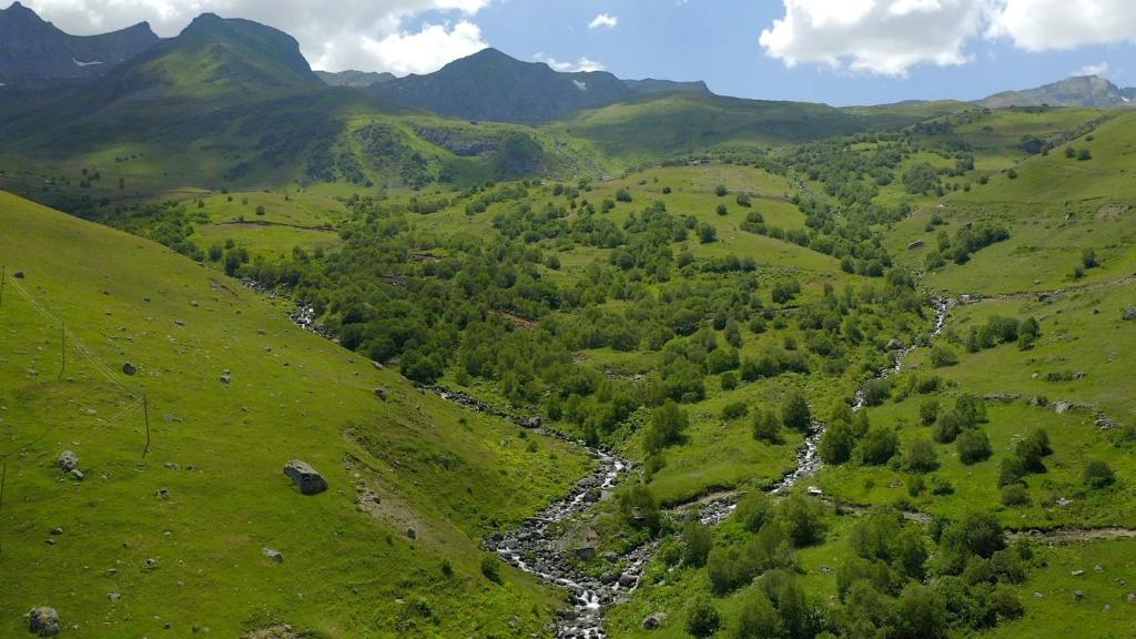 منظره کاملاً شگفت انگیز مشرف به کوه ها و جریان درست در مقابل. رانندگی کوچک از منطقه دریاچه Ozungol اما قابل مدیریت برای مناظر.