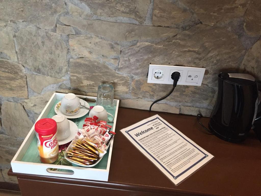 اگر گردشگران دیگر به کمک ما نمی آمدند، ما پذیرایی را پیدا نمی کردیم، در ساختمان دیگری است، آنها مانند چندین پانسیون در ساختمان های مختلف هستند، یک مزخرف. ما چهار نفر بودیم و اتاق را برای سه نفر آماده کرده بودند، بعد از درخواست یک حوله اضافی و چند ملحفه به ما دادند تا خودمان تخت را درست کنیم.