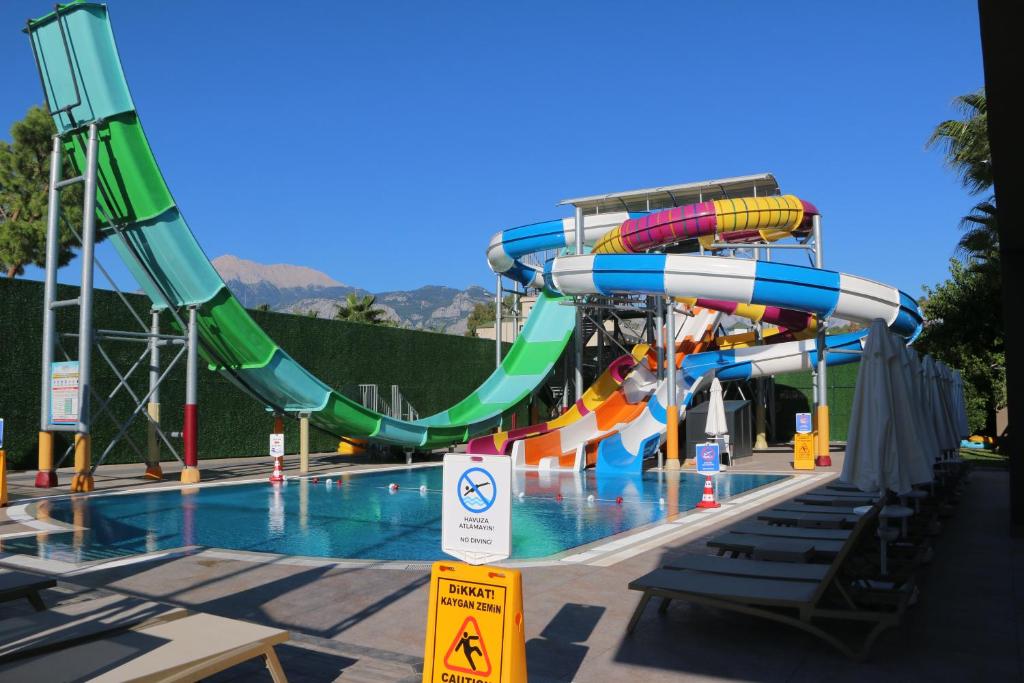 به جز چند گزینه غذایی، طعم ترکی زیادی ندارد. رستوران شلوغ و پر سر و صدا می شود. به طور کلی اندازه استراحتگاه بسیار دنج است و می تواند بسیار شلوغ شود. همینطور برای ساحلی که شلوغ بود حتی اگر در اواخر فصل از آن بازدید کردیم. استخر سرپوشیده ای که قرار است گرم شود نبود و آب کاملاً سرد بود - ما می خواستیم کودکمان را به شنا در استخر آب گرم ببریم زیرا استخرهای دیگر خیلی سرد بودند اما نمی توانستیم.