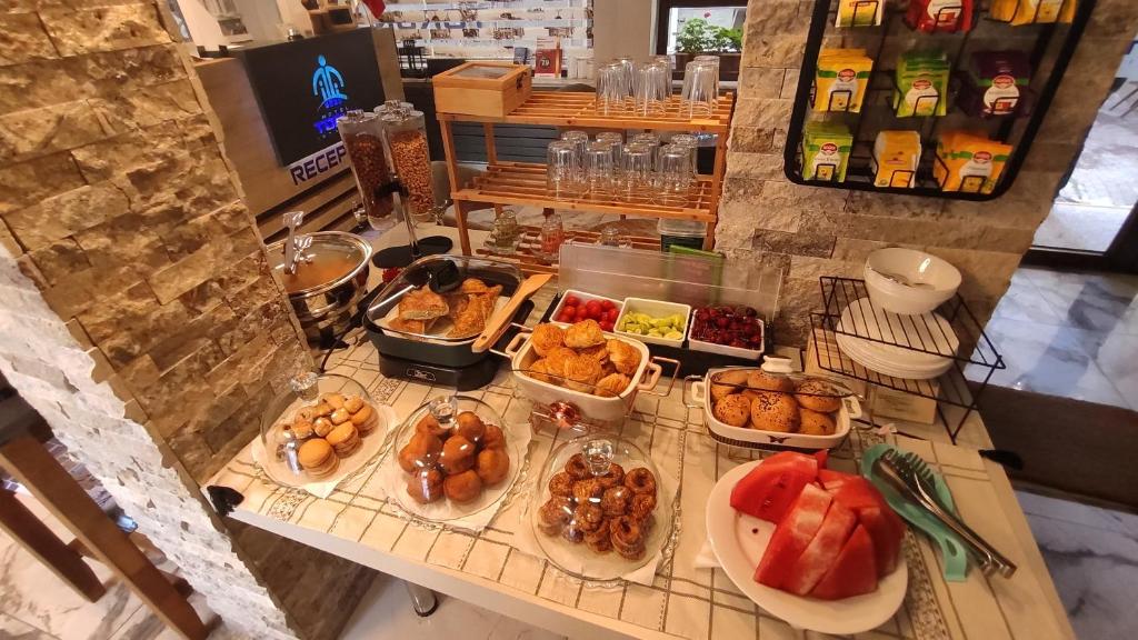 صبحانه بسیار کامل است، یک سینی با زیتون، پنیر و یک تخم مرغ می گذارند و سپس شما یک بوفه دارید که می توانید هر چیزی را که می خواهید انتخاب کنید.
