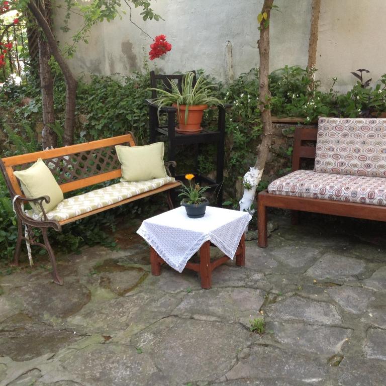 همه چیز بسیار عاشقانه مبله شده است و باغ بهشت کوچکی است و شما را به درنگ دعوت می کند. برای صبحانه پنیر، میوه، سبزیجات، غذاهای تخم مرغی یا سبزی های باغ خود، به علاوه چای یا قهوه ترکی به میزان دلخواه وجود دارد. اگر به دنبال فردیت و چیزی خاص در تعطیلات خود هستید، به جای درستی آمده اید.
