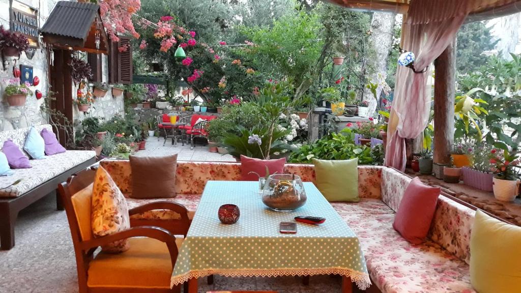 ما چهار ماه به دور دنیا سفر کردهایم و این بهترین پانسیون است که تا به حال در آن اقامت داشتهایم. به معنای واقعی کلمه 50 متر از یک سایت باستانشناسی خیرهکننده و 50 متر بیشتر تا یک ساحل زیبا فاصله دارد. میزبان و کارکنانش گوهرهایی هستند، مردمی بسیار مهربان و شیرین. باغ خیره کننده است. می توانید روی تعدادی صندلی و مبل های بالشتکی در سایه درختان گلدار که توسط سرخس ها و بوته های زیبا احاطه شده اند، استراحت کنید. واقعا لذت بخشه صبحانه ای که گنجانده شده بهترین صبحانه ترکی است که تا به حال خورده ایم، نان و پنیر تازه، گردو، مربا و مارمالاد خوشمزه، انتخابی از زیتون و املت خوشمزه.