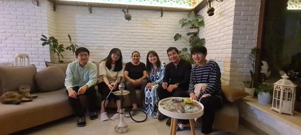 هتل بسیار دنج است، تمیزی 5، پرسنل در همه چیز کمک کردند، عصر که بعد از قدم زدن در سمرقند به هتل رسیدیم، شوکت صاحب هتل ما را به یک مهمانی چای عصرانه دعوت کرد که در آنجا با شیرینی های شرقی پذیرایی شدیم و آنها درست کردند. قلیان برای ما
