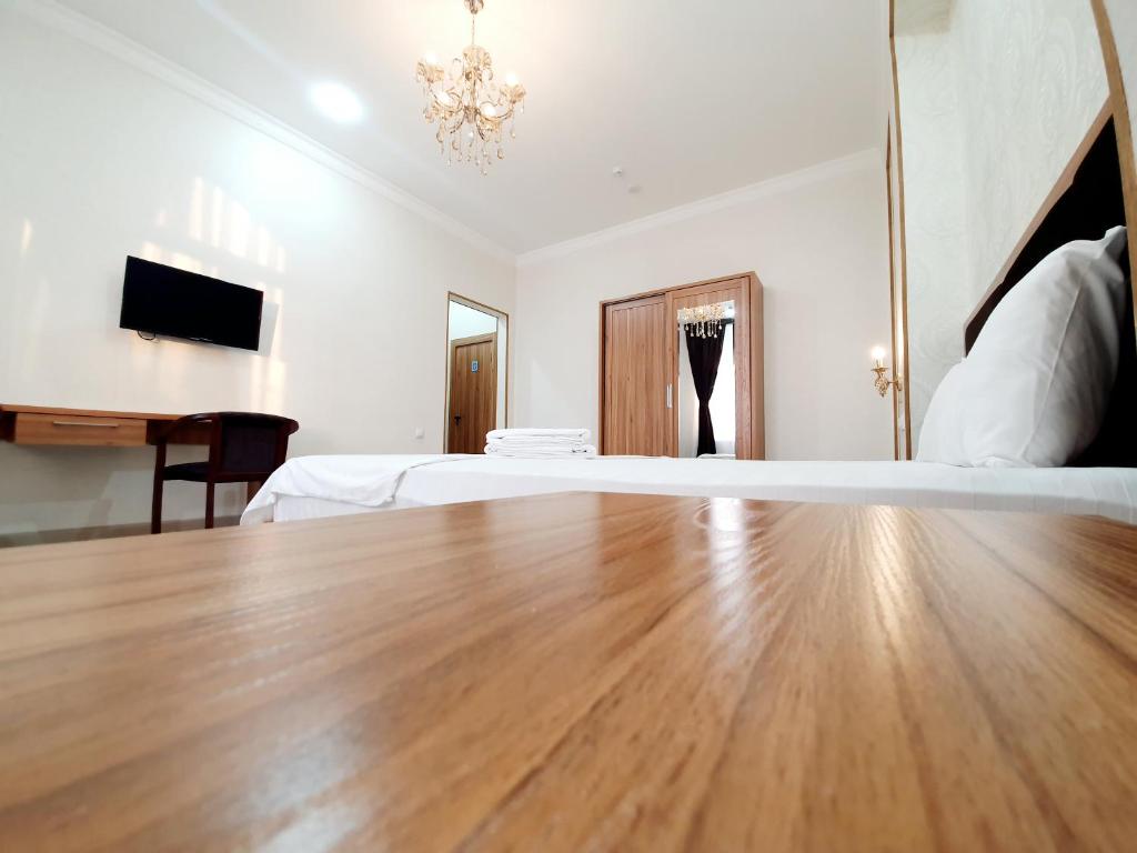 مسواک وجود نداشت، آنها آب به اتاق نمی آوردند (از 3 هتل در ازبکستان، این تنها هتلی بود که آنها نیاوردند). ملحفه ها کمی کوتاه هستند و شما همیشه روی یک تشک برهنه قرار می گیرید. موقعیت مکانی برای رسیدن به جاذبه های اصلی چندان مناسب نیست. صبحانه ها در زیرزمین سرو می شود. 2 روز ماندیم، تمیزکاری نبود.
