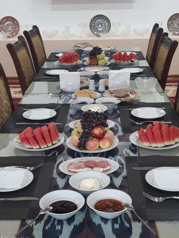 میزبانان مهربان و مهربانی که تلاش زیادی می کنند تا مهمانان احساس راحتی کنند و از بازدید خود به خیوه نهایت استفاده را ببرند. من به ویژه از نقشه و توصیه های مربوط به دیدنی ها و همچنین توضیحات و بینش در مورد زندگی محلی قدردانی کردم. خانه ای دوست داشتنی با اتاق های تمیز و راحت و محوطه های مشترک و باغ بسیار زیبا. صبحانه های خوشمزه و سالم با مقدار زیادی میوه و مربای خانگی زردآلو! موقعیت عالی و آرام در داخل دیوارهای قدیمی شهر و نزدیک به تمام جاذبه های اصلی. انگار در کنار خانواده ماندیم!