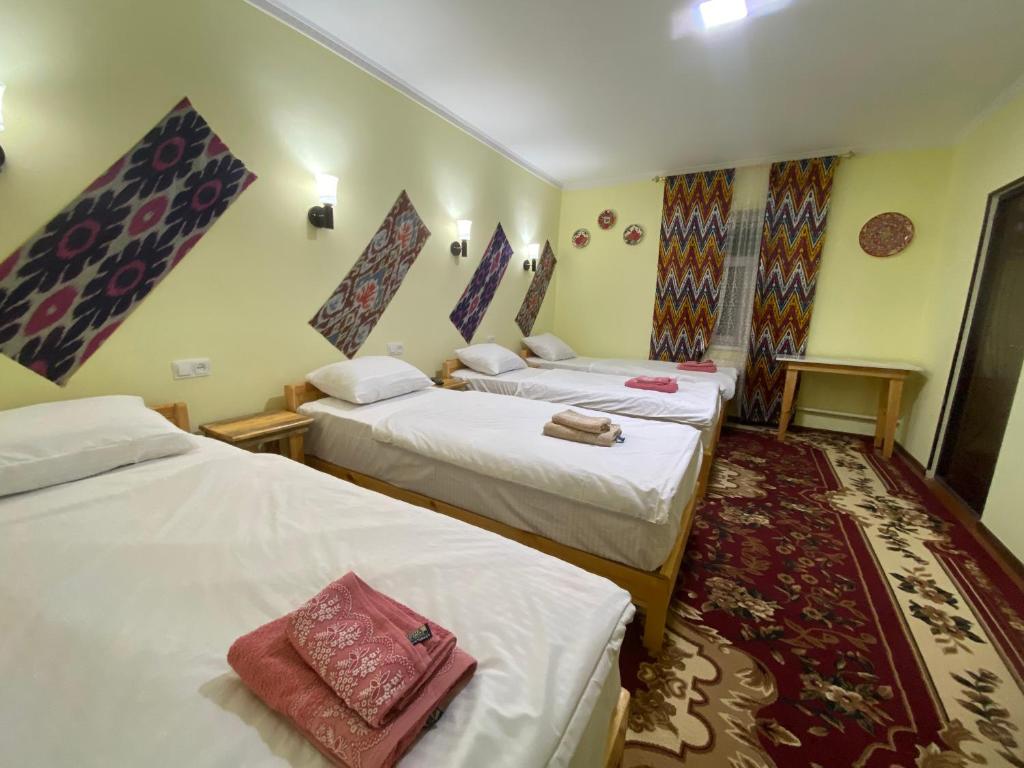 اقامت در خانه درست در Itchan Kala - از این رو در فاصله چند قدمی تا هر نقطه در داخل و خارج از دیوار شهر. کارکنان بسیار پاسخگو - آنها صبحانه و شام عالی (در صورت درخواست) سرو کردند. آنها انتقال از ایستگاه قطار به خانه را نیز فراهم می کنند. اتاق 4 تخته جادار و به زیبایی تزئین شده است.