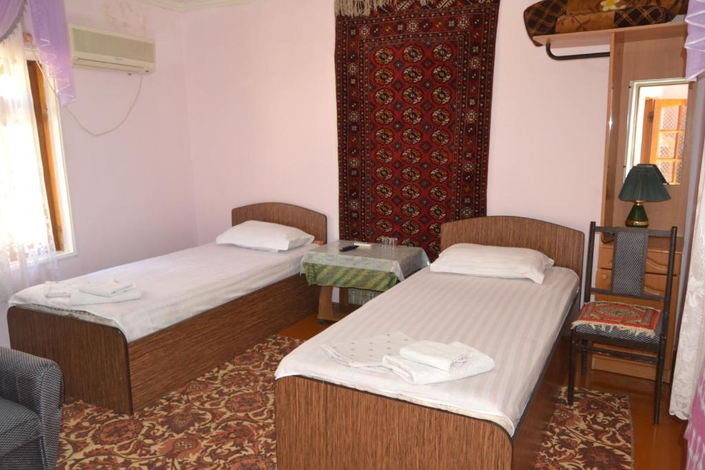 نذیرا بسیار مهربان و مهربان است و حیاط هتل با وجود اینکه در مرکز شهر قرار دارد زیبا، آرام و ساکت است. صبحانه شگفتانگیز بود، با میوههای خانگی، و نذیرا در بدو ورود برایم چای و شیرینی آورد و برای قطار ساعت 4 صبح به تاشکند برایم تاکسی سفارش داد. من هتل او را به هر کسی توصیه می کنم.