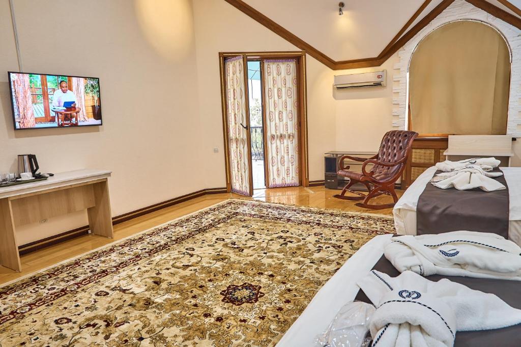 یک مشکل در هنگام ورود به اتاق ما ایجاد شد: اتاق ما تا ساعت 18:00 اشغال شده بود، ما در شهر قدم زدیم. تمیز کردن در 2 روز انجام نشد، تلویزیون، فقط اینترنت، تلویزیون کابلی وجود ندارد. جایی برای در آوردن لباس در سونا وجود ندارد، کابین ها به خوبی فکر نشده اند، توالت کار نمی کند، تایمر گرمایش روشن نمی شود، درجه حرارت غیرواقعی بالاست. در اتاق آویز برای لباس بیرونی وجود ندارد، در کمد قفسه وجود ندارد و فقط یک چوب لباسی وجود دارد، سشوار وجود ندارد.