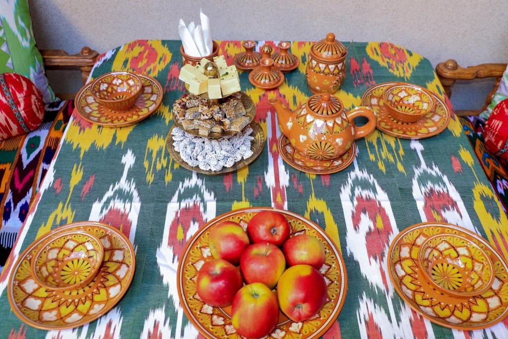 با استقبال بسیار دوستانه و با دقتی از ما پذیرایی کردند و صبحانه را در حیاط زیبا پذیرایی کردند. از جمله، یک راهنمای شهری عالی به ما داده شد که هر چیزی را که میخواستیم ببینیم به ما نشان داد و توانست به سؤالات ما در مورد زندگی در ازبکستان به روشی بسیار واقع بینانه پاسخ دهد.