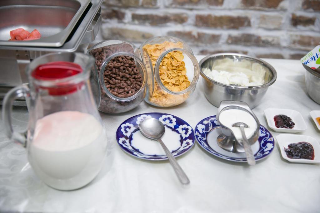 من یک کتری و فنجان به اتاق اضافه می کردم. صبحانه، اگر حدود ساعت 10 برسید، از قبل سرد است و می توان آن را کمی متنوع کرد. Wi-Fi همیشه پایدار نیست، اگرچه اتصالات مختلف زیادی وجود دارد.