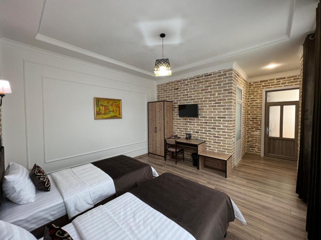 اتاق های زیبا، راحت و جادار با تخت های راحت که در قسمت بزرگی از شهر واقع شده اند. اتاق ها کاملا تمیز هستند و بوی خوبی دارند. مهمانسرا آرام است. بسیاری از رستورانهای عالی در فاصله چند قدمی قرار دارند و جاذبههای گور امیر و میدان رجستان با تاکسی کوتاه یا پیادهروی خوب (در هوای خوب) فاصله دارند. خانواده ای که آن را اداره می کنند بسیار خوب و مفید هستند. اگر در سمرقند هستید شدیداً توصیه می کنم اینجا بمانید.