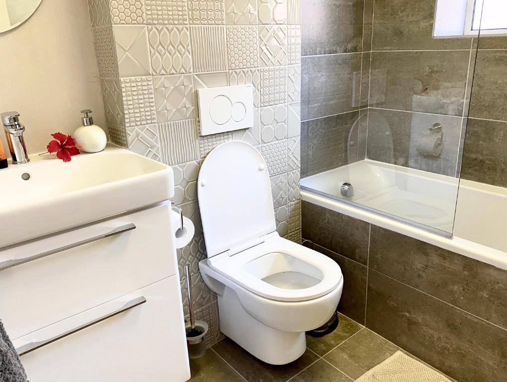 Ocean Pearl Apartment تنها 11 دقیقه پیاده تا ساحل مرکزی و 0.6 مایل از ساحل رابرگ فاصله دارد. این ملک دسترسی به پاسیو، اسکواش در زمین اسکواش، پارکینگ خصوصی رایگان، و فای رایگان دارد. این ملک دارای زمین بازی کودکان و مبلمان در فضای باز است. این آپارتمان بزرگ دارای تراس و منظره استخر، 3 اتاق خواب، اتاق نشیمن، تلویزیون صفحه تخت کابلی، آشپزخانه مجهز، و 2 حمام با وان و دوش است. حوله و ملحفه در آپارتمان وجود دارد. برای حفظ حریم خصوصی بیشتر، اقامتگاه دارای ورودی خصوصی است و با امنیت تمام روز محافظت می شود. مهمانان می توانند در استخر روباز شنا کنند، دوچرخه سواری کنند، در باغ استراحت کنند و از امکانات باربیکیو استفاده کنند. باشگاه گلف Goose Valley 3.4 مایلی با آپارتمان فاصله دارد، در حالی که Robberg Nature Reserve در 3.9 مایلی آپارتمان است. نزدیکترین فرودگاه خلیج پلتنبرگ است که در فاصله 3.1 مایلی از آپارتمان Ocean Pearl قرار دارد و این ملک خدمات شاتل فرودگاهی را ارائه می دهد. فاصله در توضیحات ملک با استفاده از © OpenStreetMap محاسبه می شود.