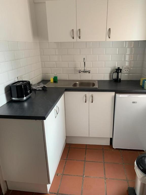 آشپزخانه کم از چند ظروف و یک سفره برای میز بیرون.
