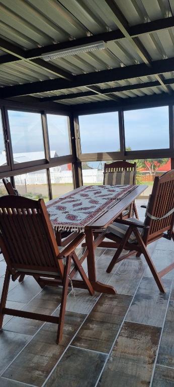 خانه تعطیلات Stroopsoet در خلیج Mossel، فقط 6.5 مایلی از مجموعه موزه Bartolomeu Dias و 16 مایلی از Botlierskop Private Game Reserve واقع شده است. این خانه تعطیلات که در ساختمانی متعلق به سال 2006 واقع شده است، 1.7 مایل تا ساحل اول و 1.8 مایل تا ساحل دوم فاصله دارد. یک شومینه در فضای باز وجود دارد و مهمانان میتوانند از Wifi رایگان و پارکینگ خصوصی رایگان استفاده کنند. این خانه تعطیلات دارای پاسیو و منظره دریا، دارای 2 اتاق خواب، اتاق نشیمن، تلویزیون صفحه تخت، آشپزخانه مجهز، و 2 حمام با دوش است. حوله و ملحفه در خانه تعطیلات ارائه می شود. محل اقامت غیر سیگاری است. میهمانان می توانند با امکانات باربیکیو ملک از هوای گرم نهایت استفاده را ببرند. مهمانان در خانه تعطیلات می توانند از ماهیگیری در نزدیکی لذت ببرند یا از باغ نهایت استفاده را ببرند. باشگاه گلف Pinnacle Point در 4.2 مایلی خانه تعطیلات Stroopsoet و باشگاه گلف Mossel Bay در 6 مایلی ملک قرار دارد. نزدیکترین فرودگاه فرودگاه جورج است که 30 مایل از محل اقامت فاصله دارد. فاصله در توضیحات ملک با استفاده از © OpenStreetMapShow me more